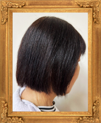 すると、クセ毛がしっかり伸びてツヤのあるサラサラのストレートヘアになりました。長さも短くカットしてもらい、お手入れしやすくなりました。