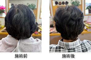 施術後は頭皮の赤みも落ち着き、髪の毛もしっとりサラサラになり、白髪もピンクブラウンにしっかり染まりました。
